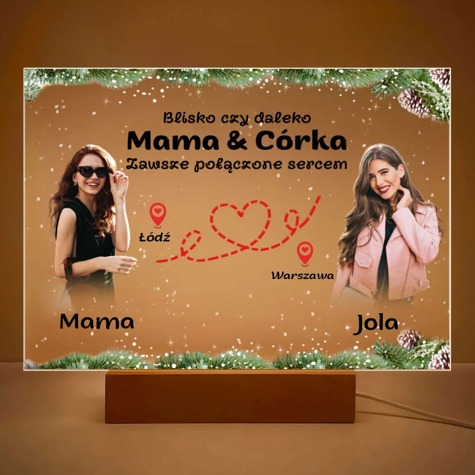 Zawsze połączone sercem (Mama & Córka) - druk na szkle, spersonalizowany prezent na Boże Narodzenie dla mamy