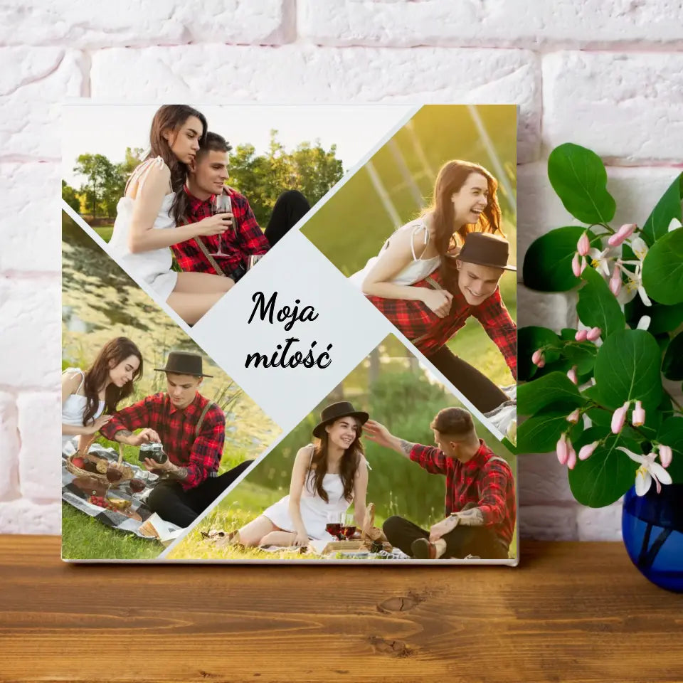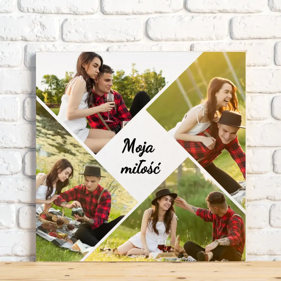 Moja miłość kolaż z napisem - druk na płótnie, spersonalizowany prezent