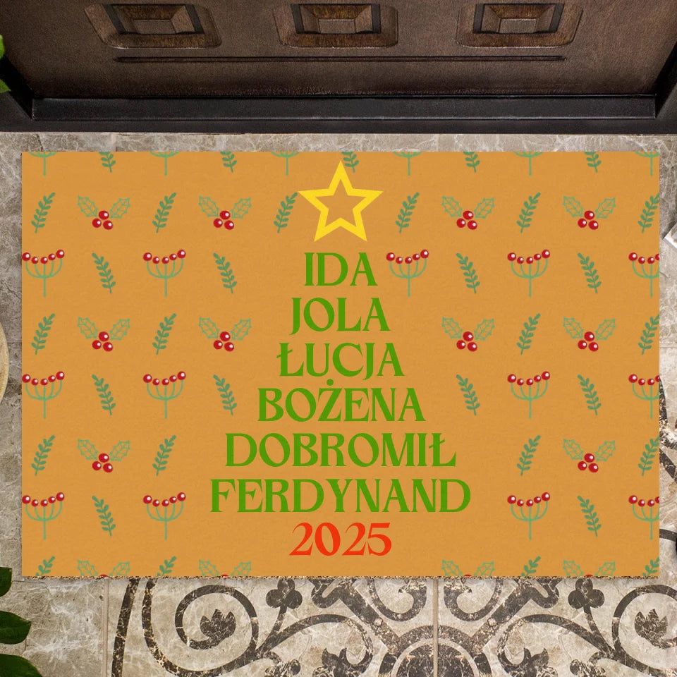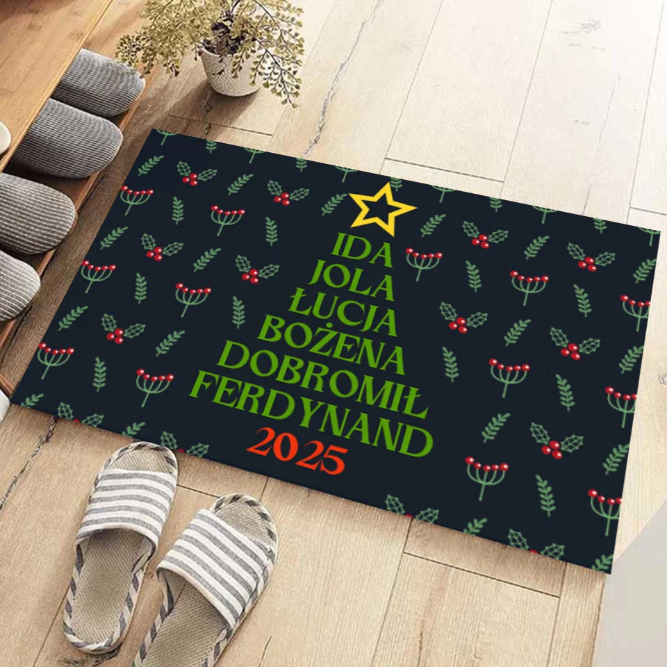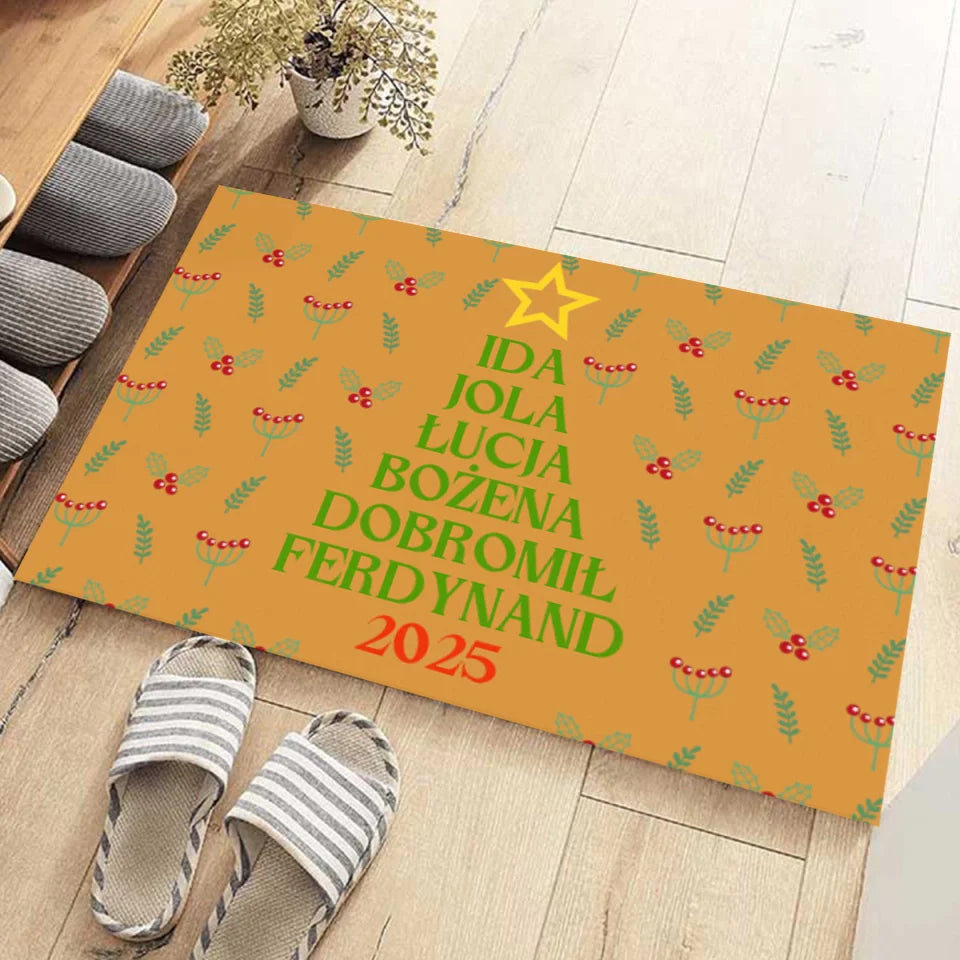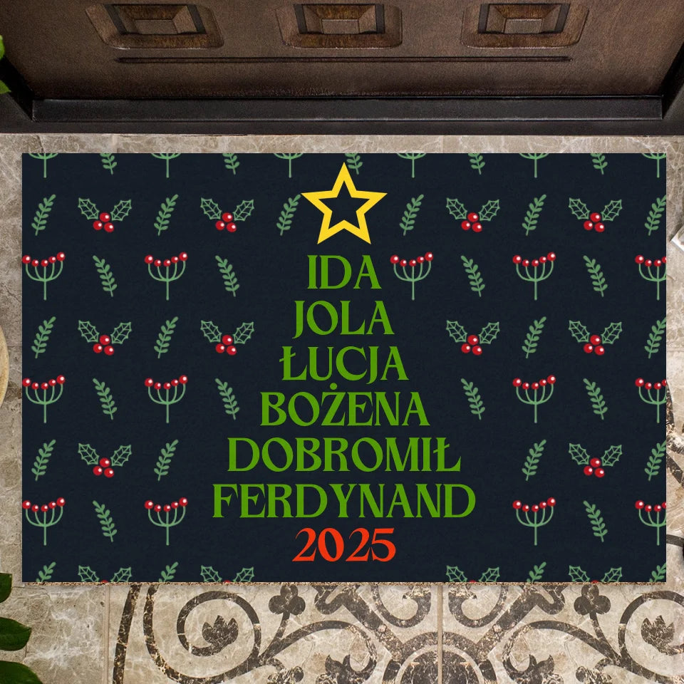 Choinka z imionami - Spersonalizowany dywanik pod drzwi na Boże Narodzenie