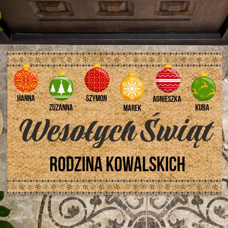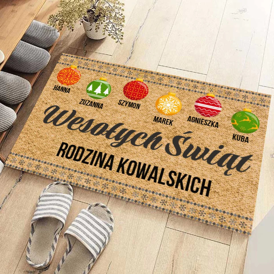 Wesołych Świąt - Spersonalizowany dywanik pod drzwi na Boże Narodzenie dla rodziny