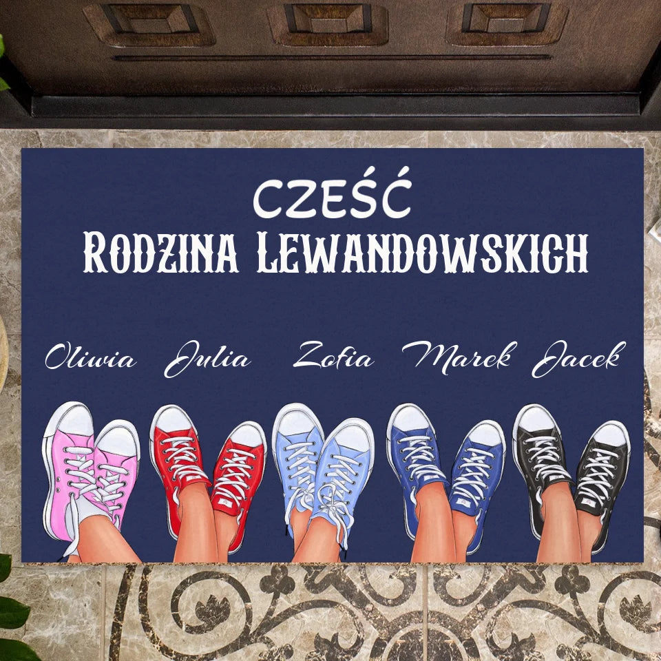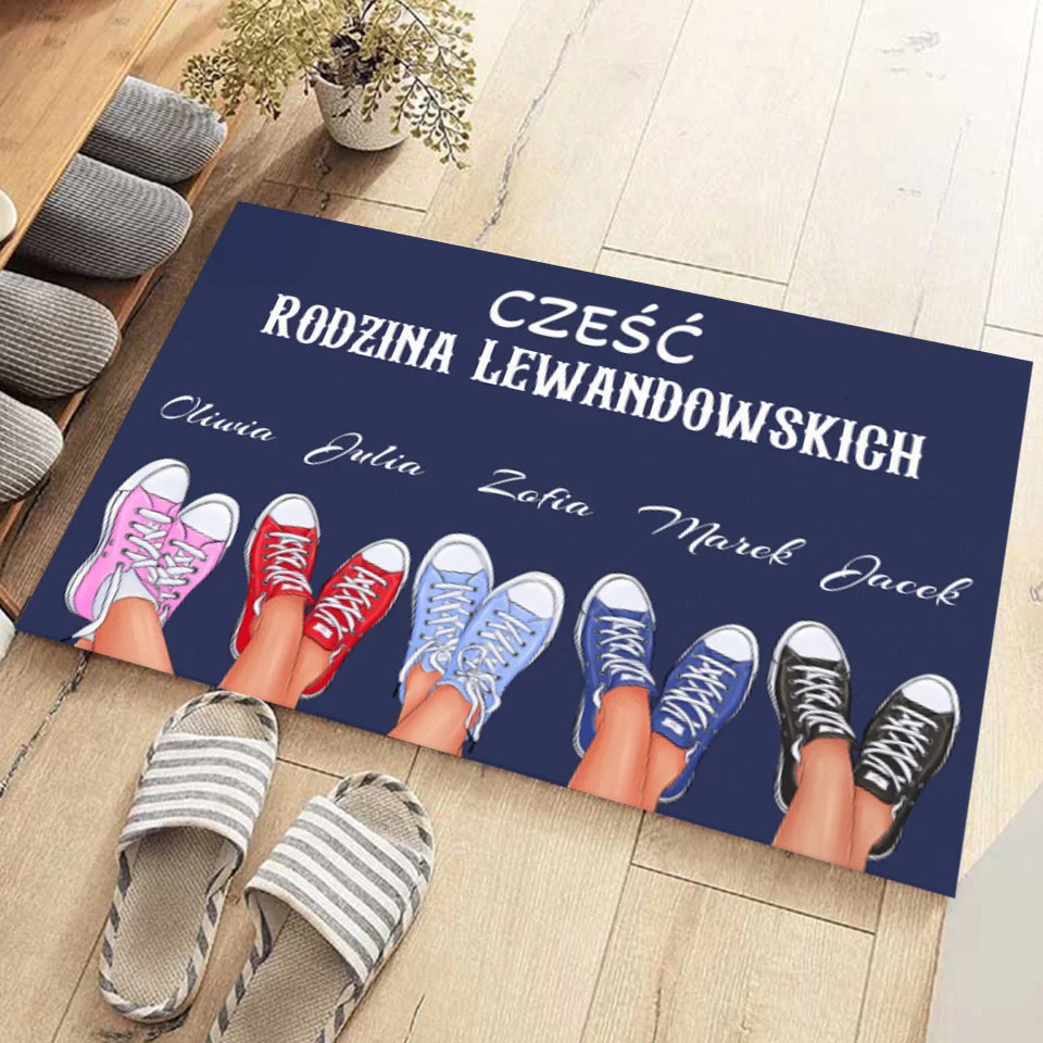 Cześć - Spersonalizowany dywanik pod drzwi dla rodziny