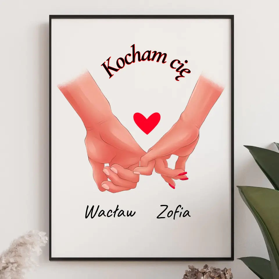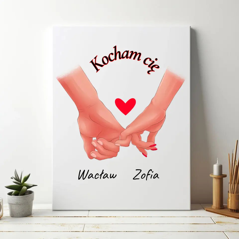 Para rąk z imionami - druk na płótnie, spersonalizowany prezent dla pary