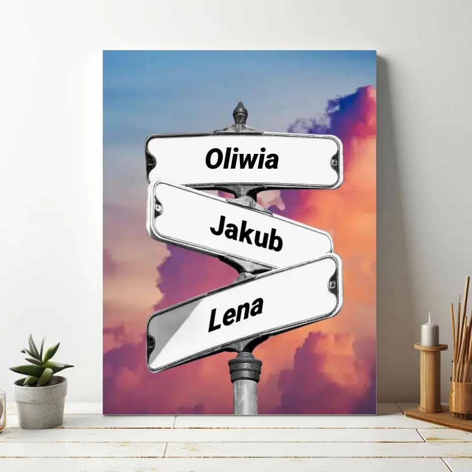 Rodzina (znak drogowy) #1 - druk na płótnie, spersonalizowany prezent dla rodziny