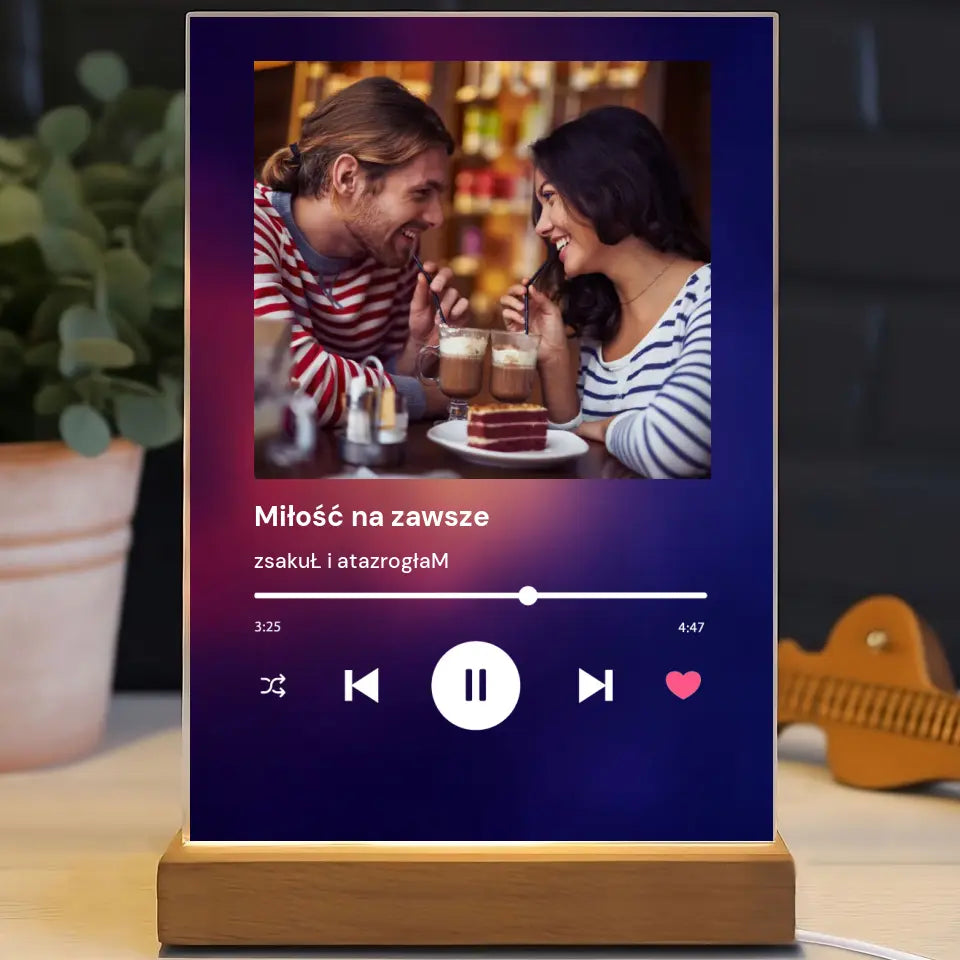 Spotify zdjęcie z napisem - Druk na szkle, spersonalizowany prezent dla pary