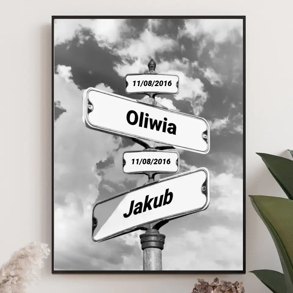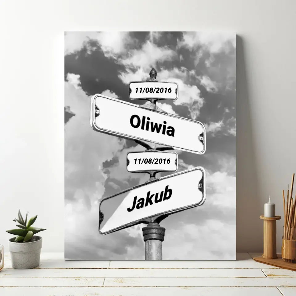 Urodziny dzieci (znak drogowy) - druk na płótnie, spersonalizowany prezent dla rodziny