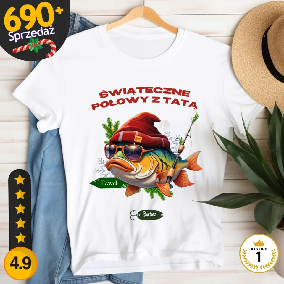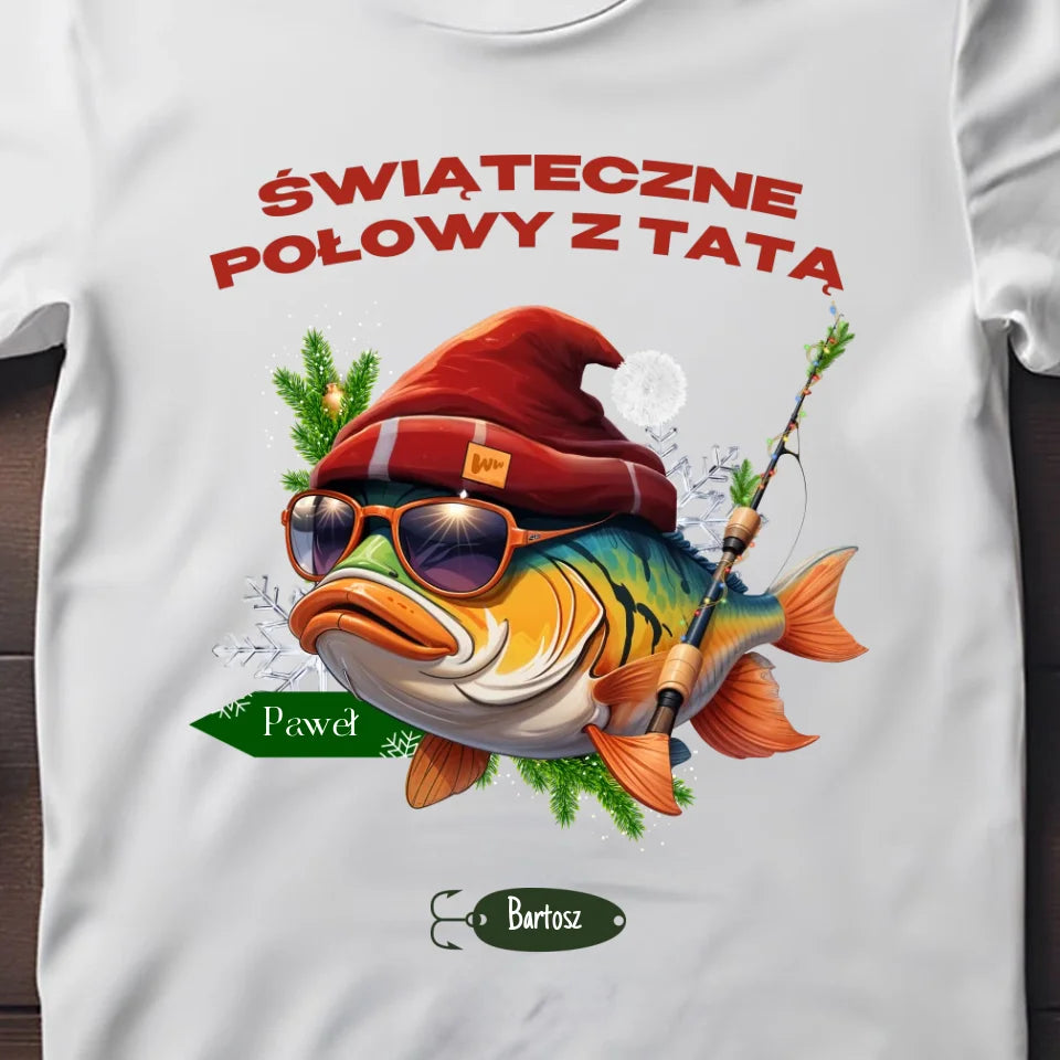 Świąteczne połowy z tatą - koszulka, wyjątkowy prezent na Boże Narodzenie dla taty