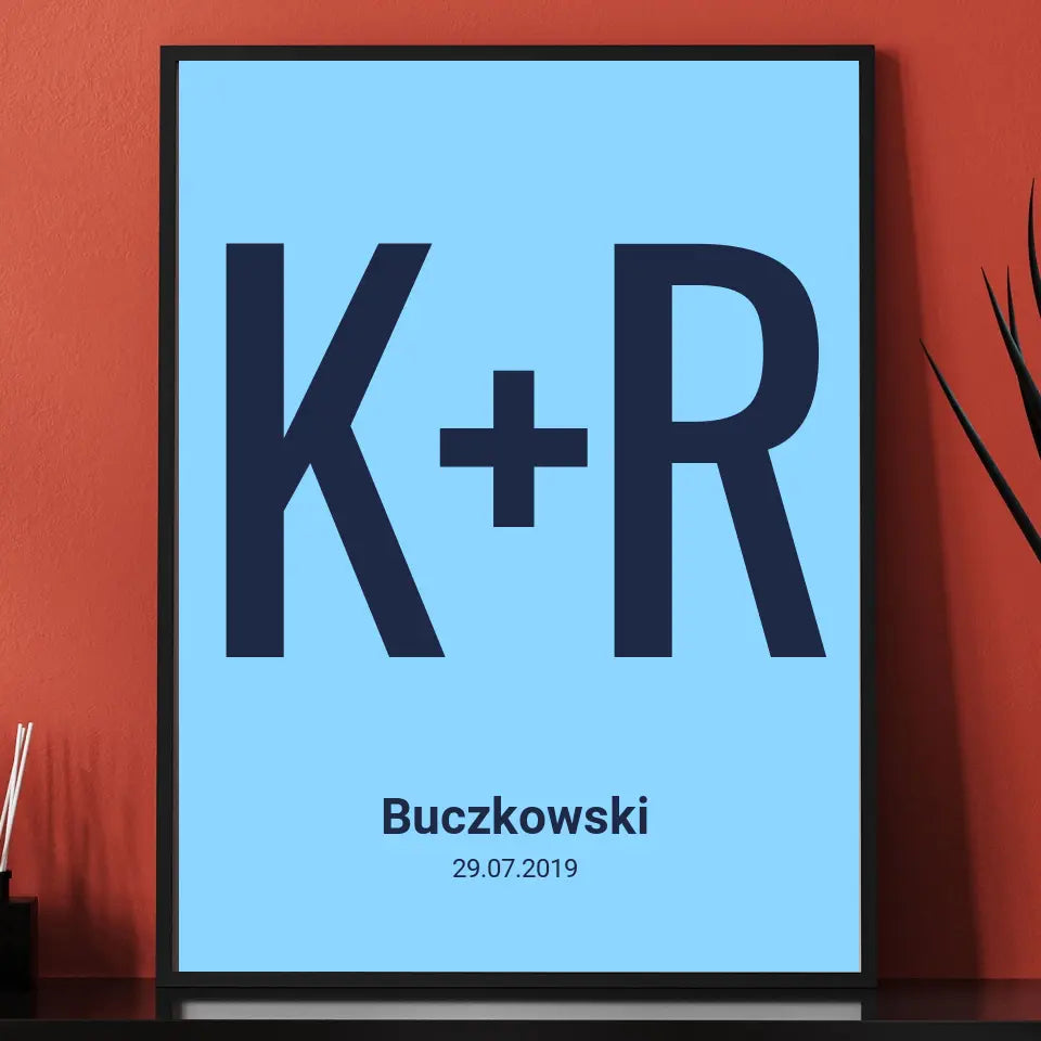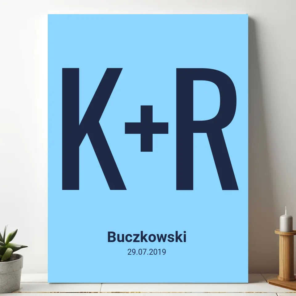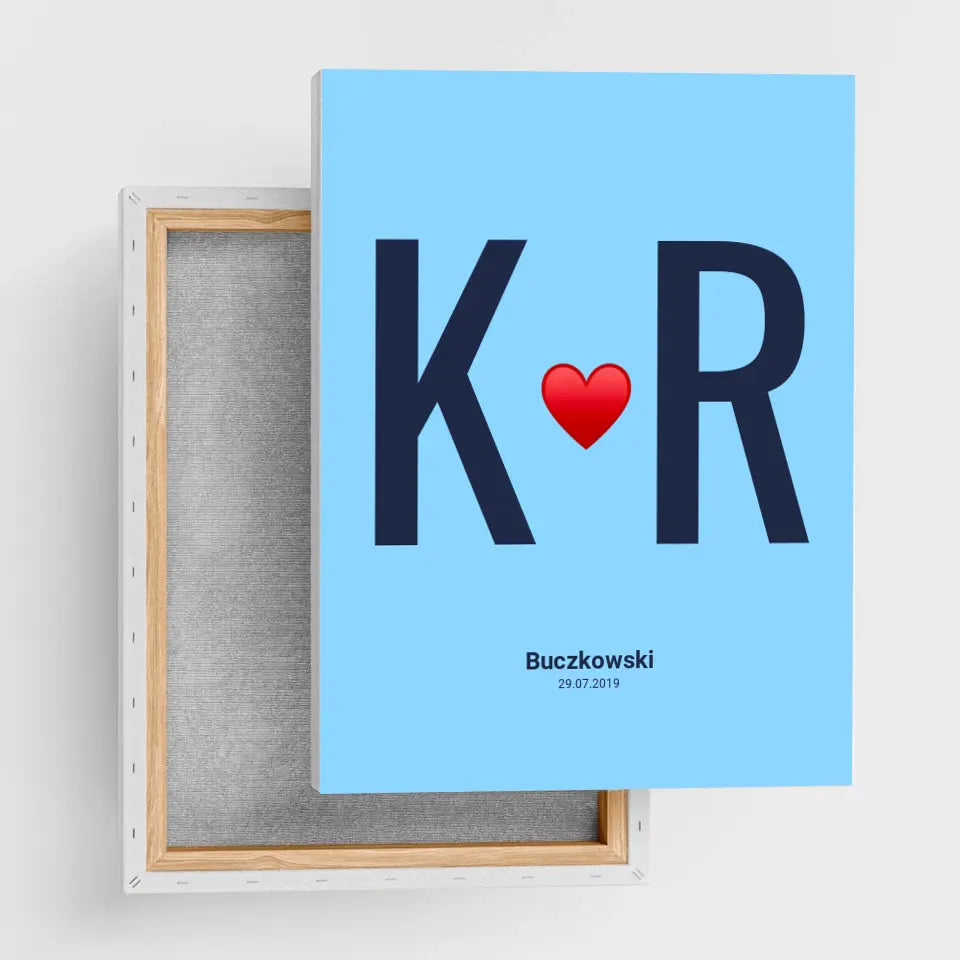 Nasz związek "Pierwsze litery imion"- druk na płótnie, spersonalizowany prezent dla pary