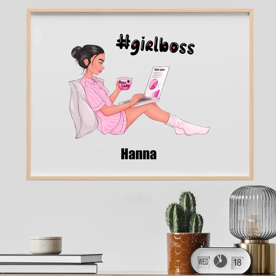 Girl Boss - druk na płótnie, spersonalizowany prezent dla dziewczyny, przyjaciółki, dziewczyny szefa