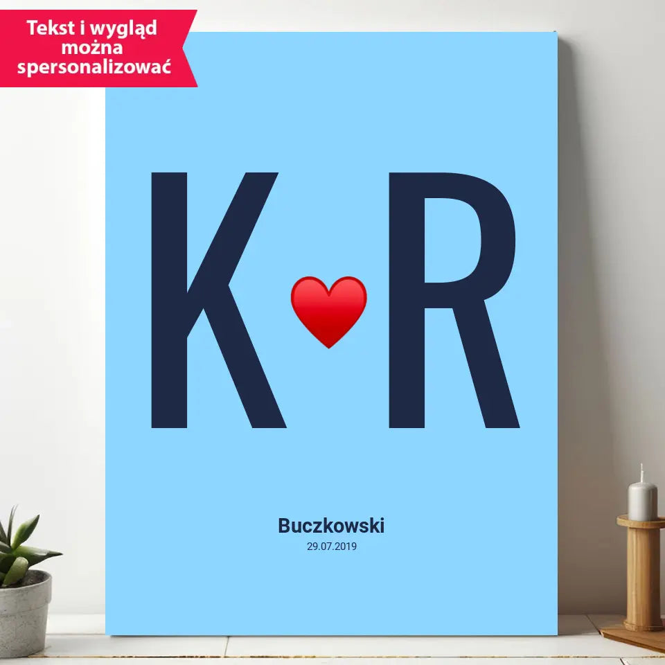 Nasza miłość "Pierwsze litery imion"- druk na płótnie, spersonalizowany prezent dla pary