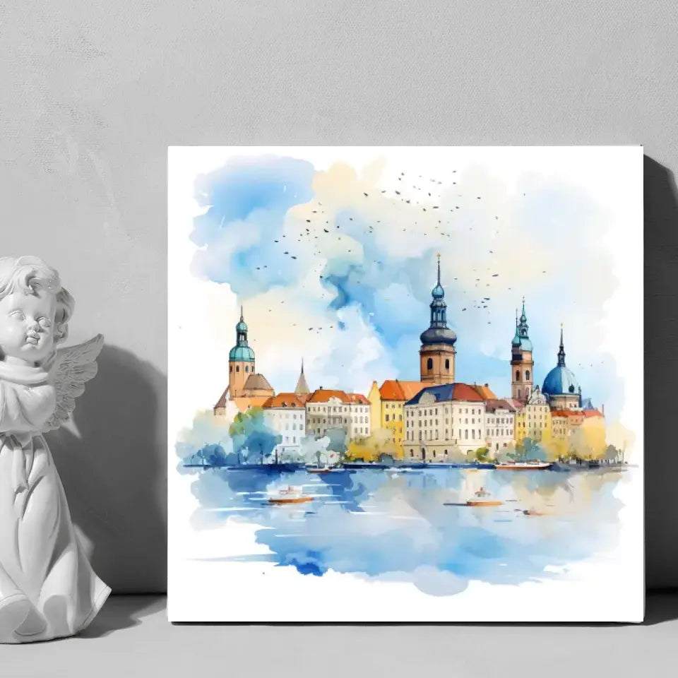 Szczecin (Akwarela) - druk na płótnie, spersonalizowany prezent