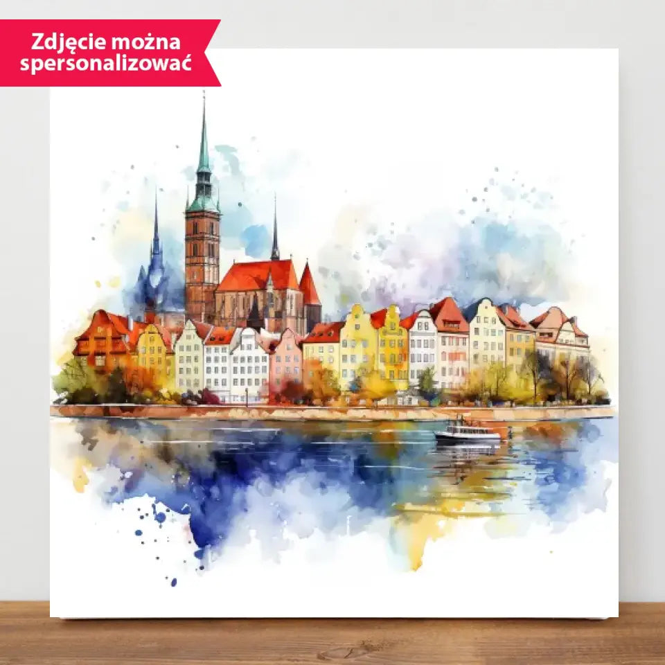 Toruń (Akwarela) - druk na płótnie, spersonalizowany prezent