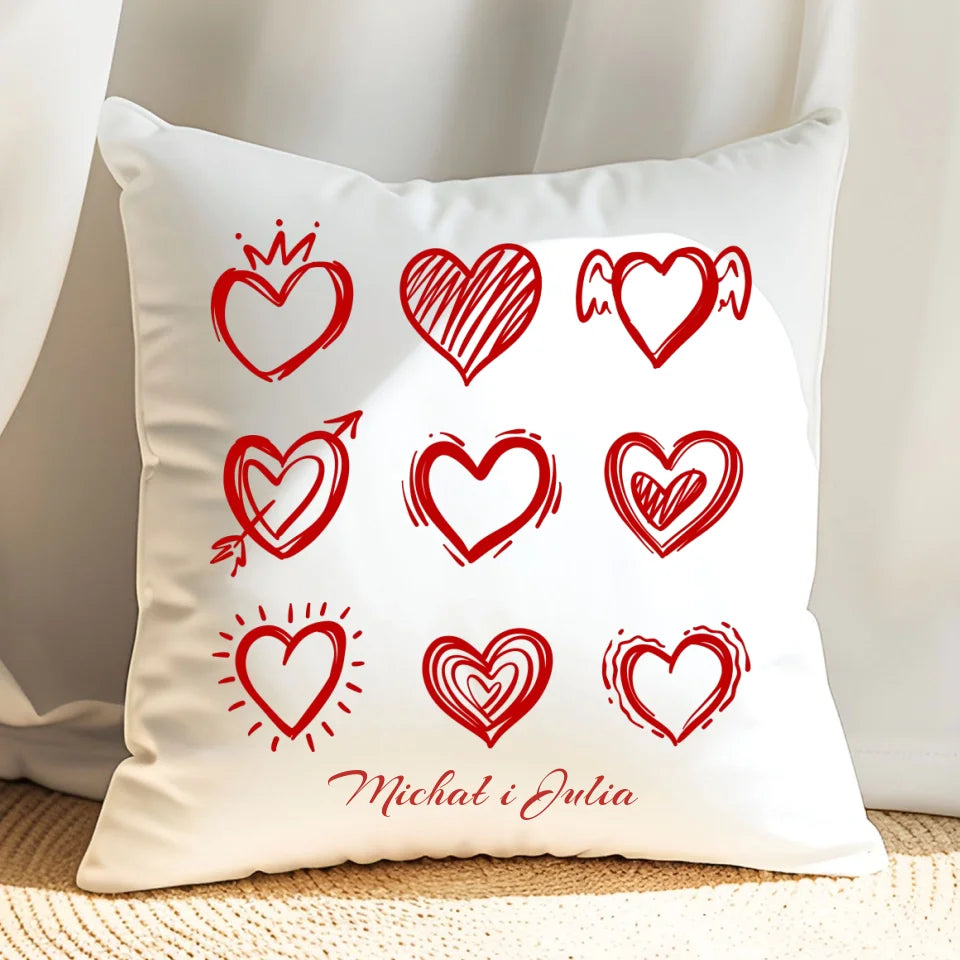 Serca pary - poduszka, spersonalizowany prezent dla pary