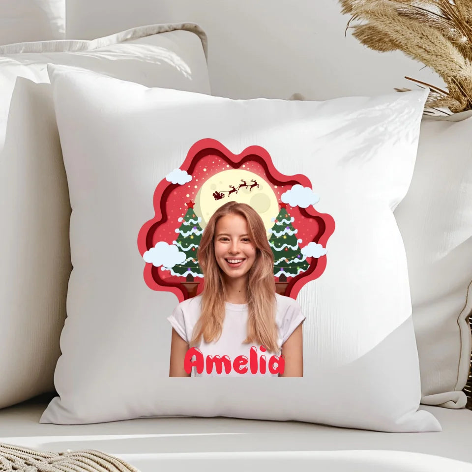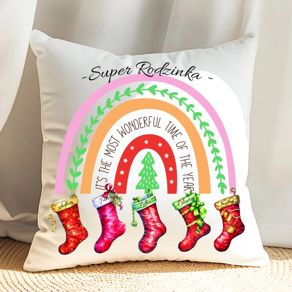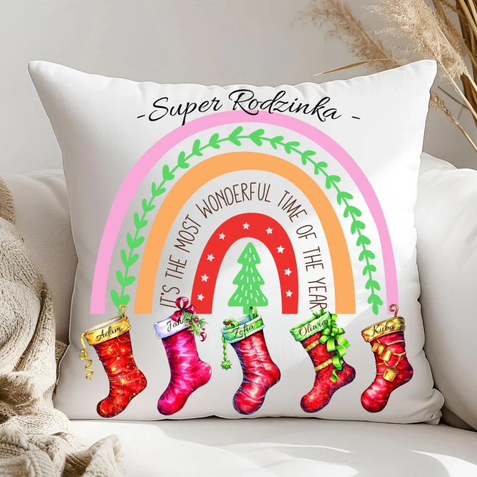 Zdjęcie świąteczne z imionami - poduszka, spersonalizowany prezent na Mikołajki dla dzieci
