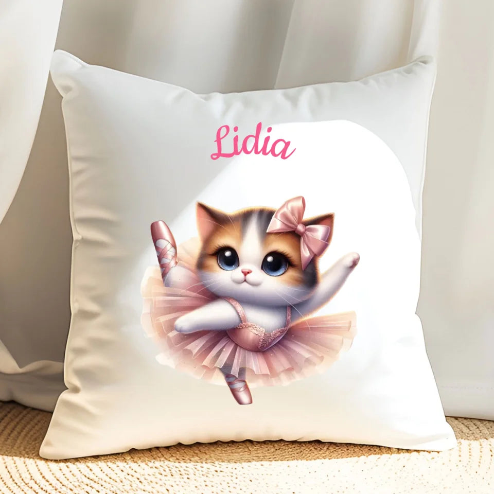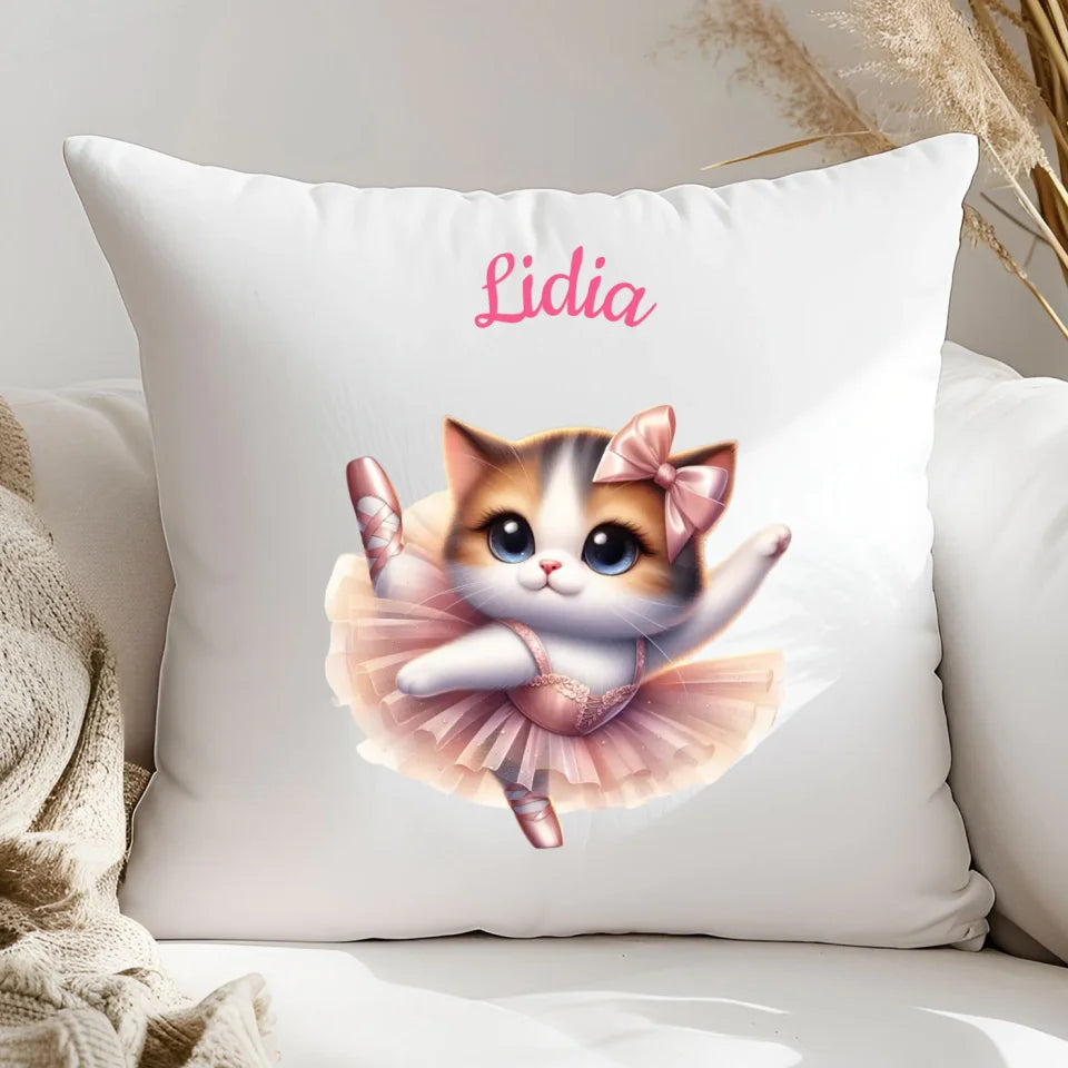 Kotek baletnica - poduszka, spersonalizowany prezent na Mikołajki dla dziewczynki