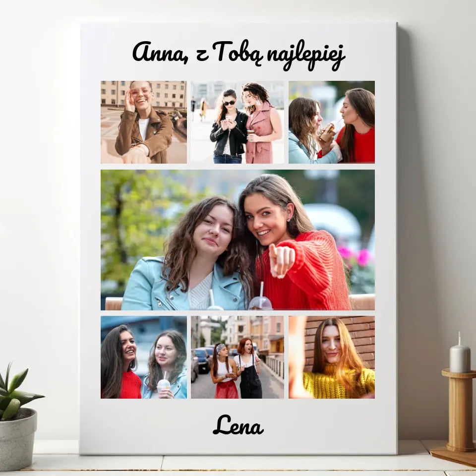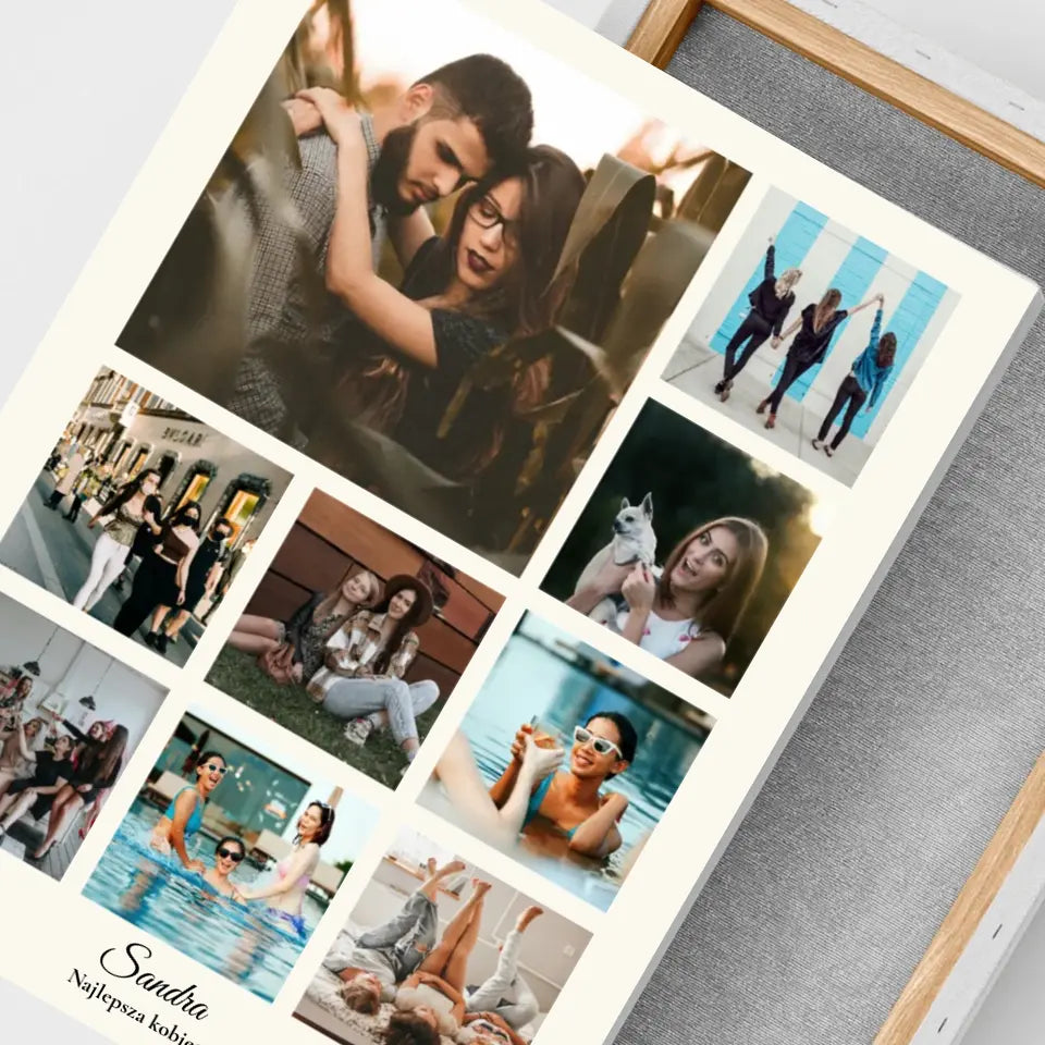 Kolaż na 9 zdjęć z imieniem - Druk na płótnie, spersonalizowany prezent dla kobiety, przyjaciółki, dziewczyny, żony, pary