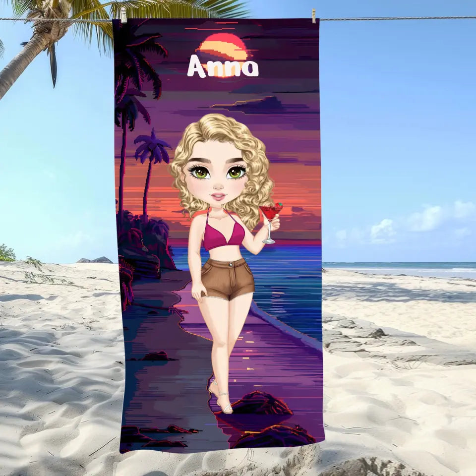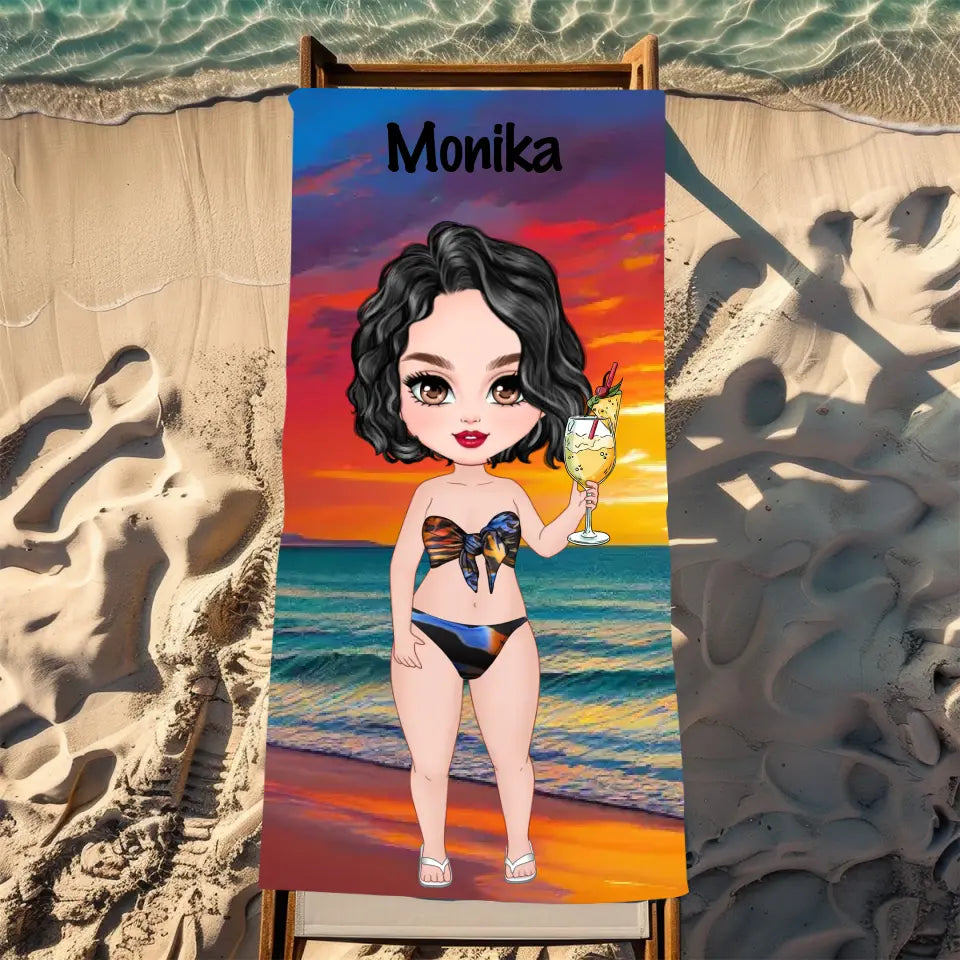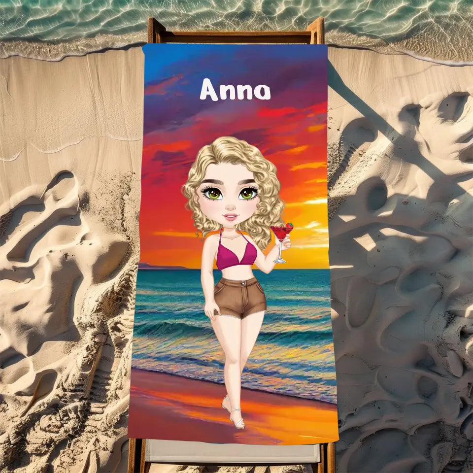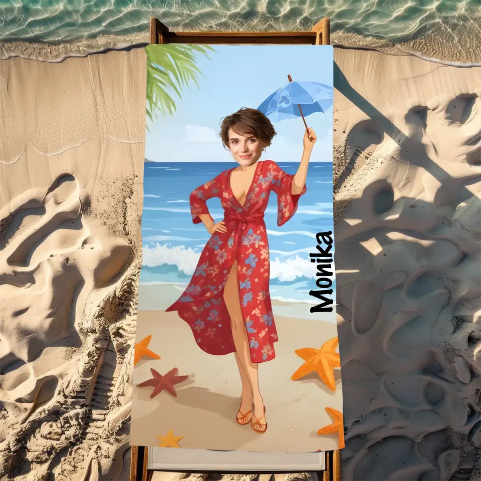 Dodaj własne zdjęcie! Dziewczyna na plaży - Ręcznik plażowy, wyjątkowy prezent dla przyjaciółek