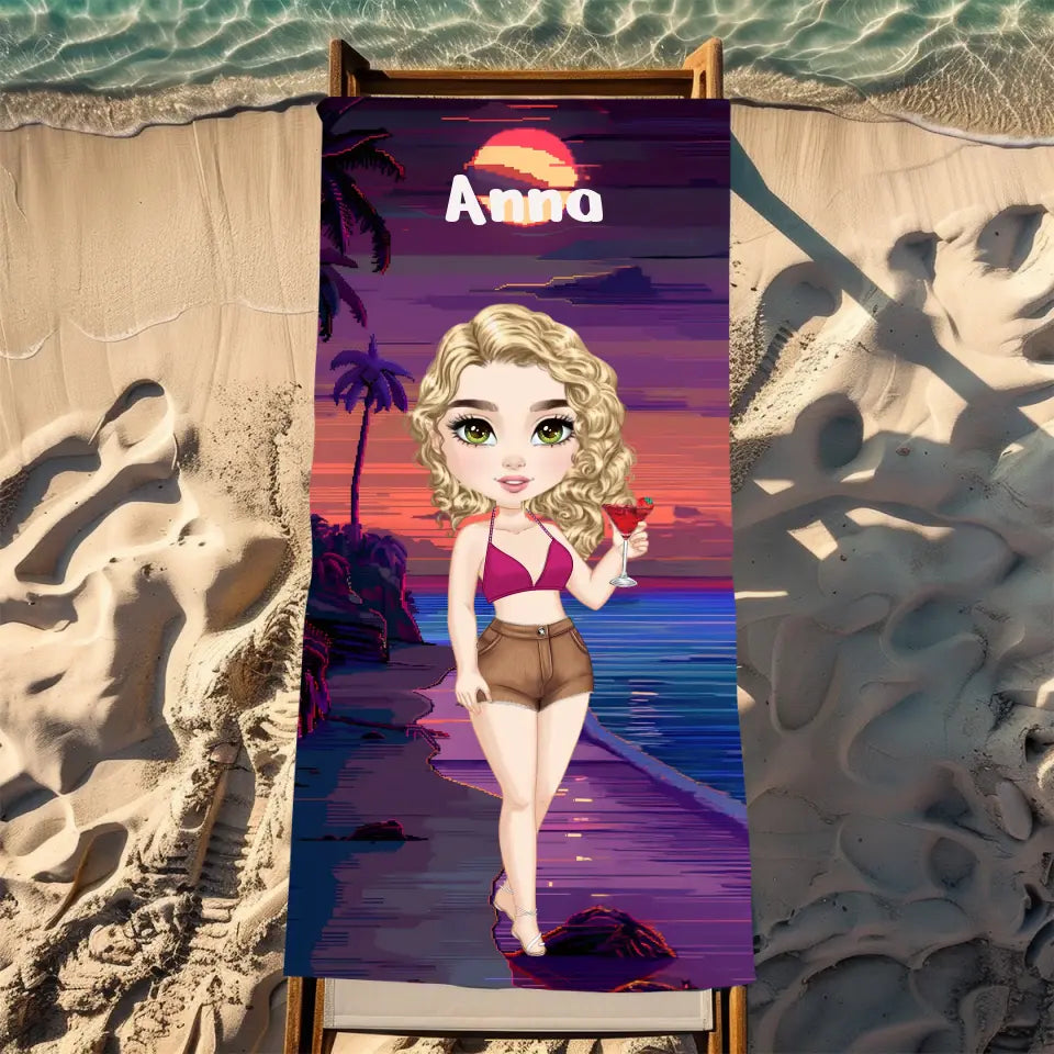 Kobieta na plaży (pixel) - Ręcznik plażowy, wyjątkowy prezent dla przyjaciółek