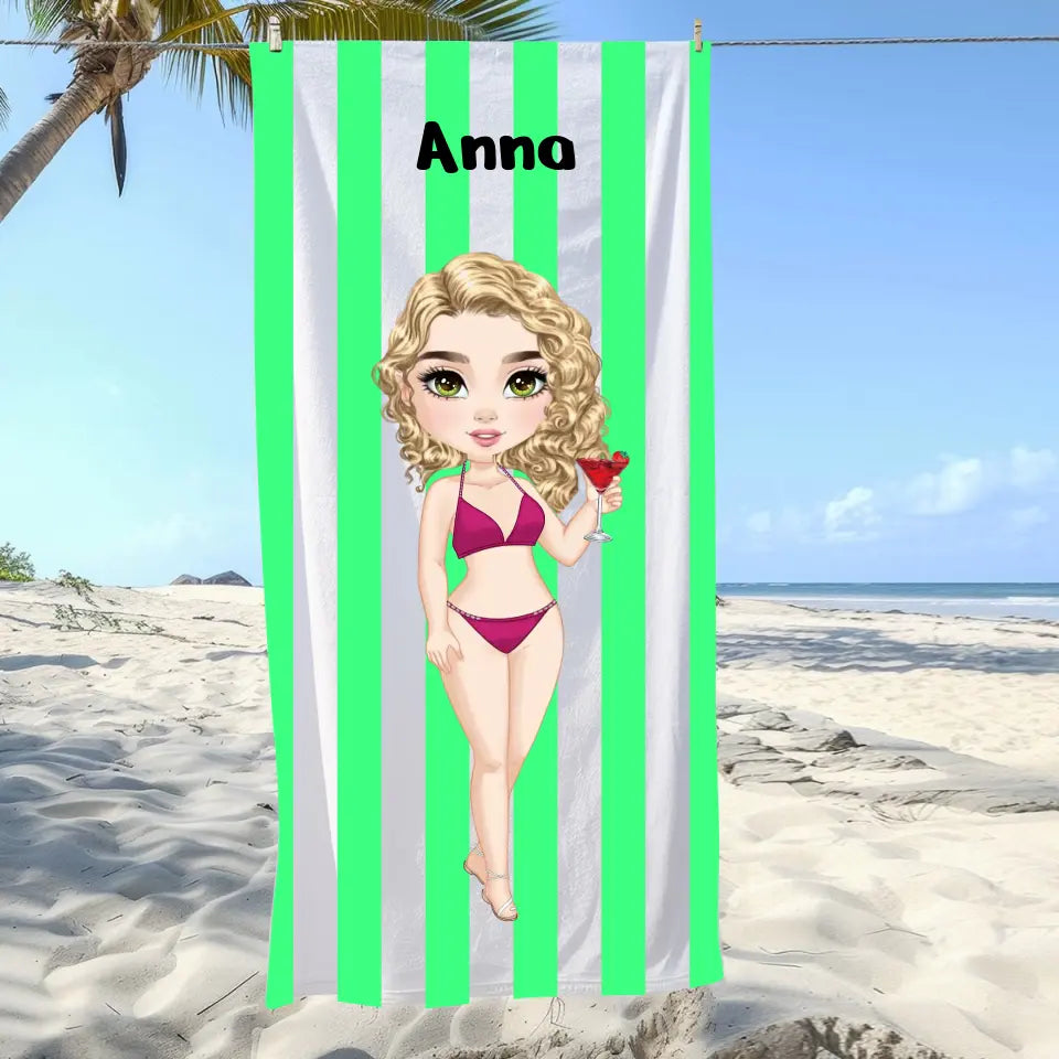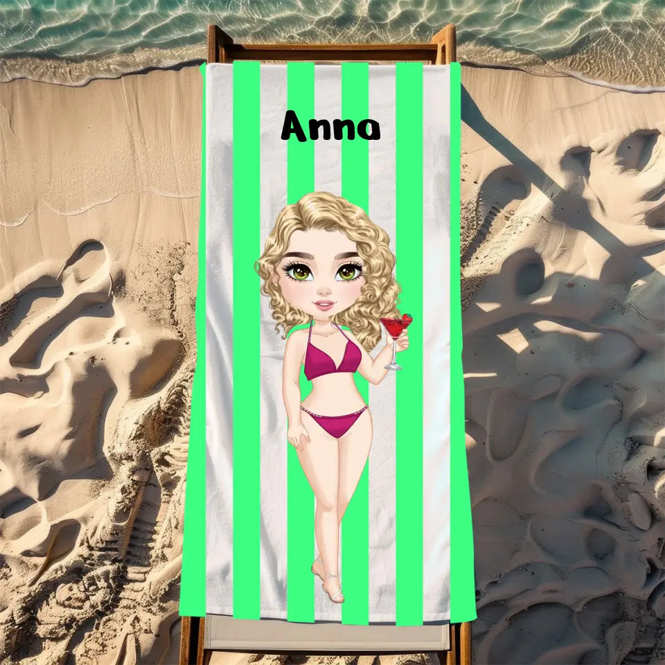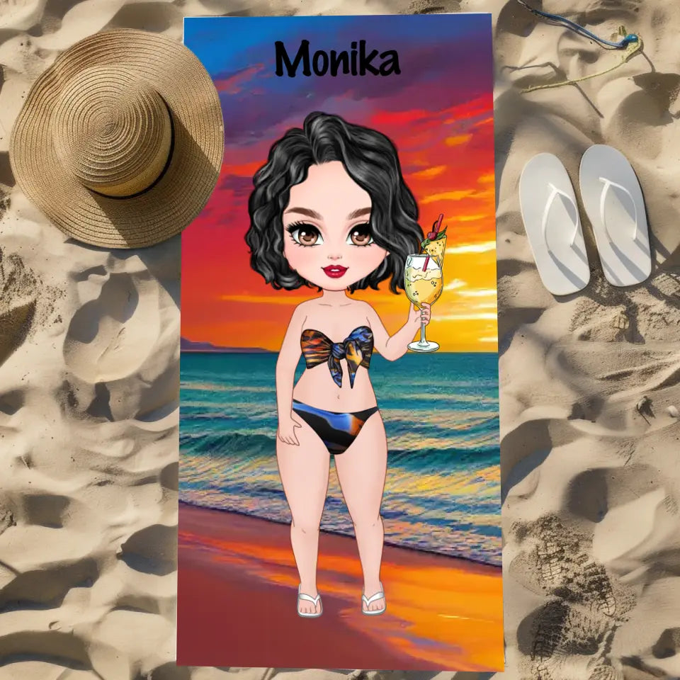 Dziewczyna w kostiumie kąpielowym (plaża) - Ręcznik plażowy, wyjątkowy prezent dla przyjaciółek