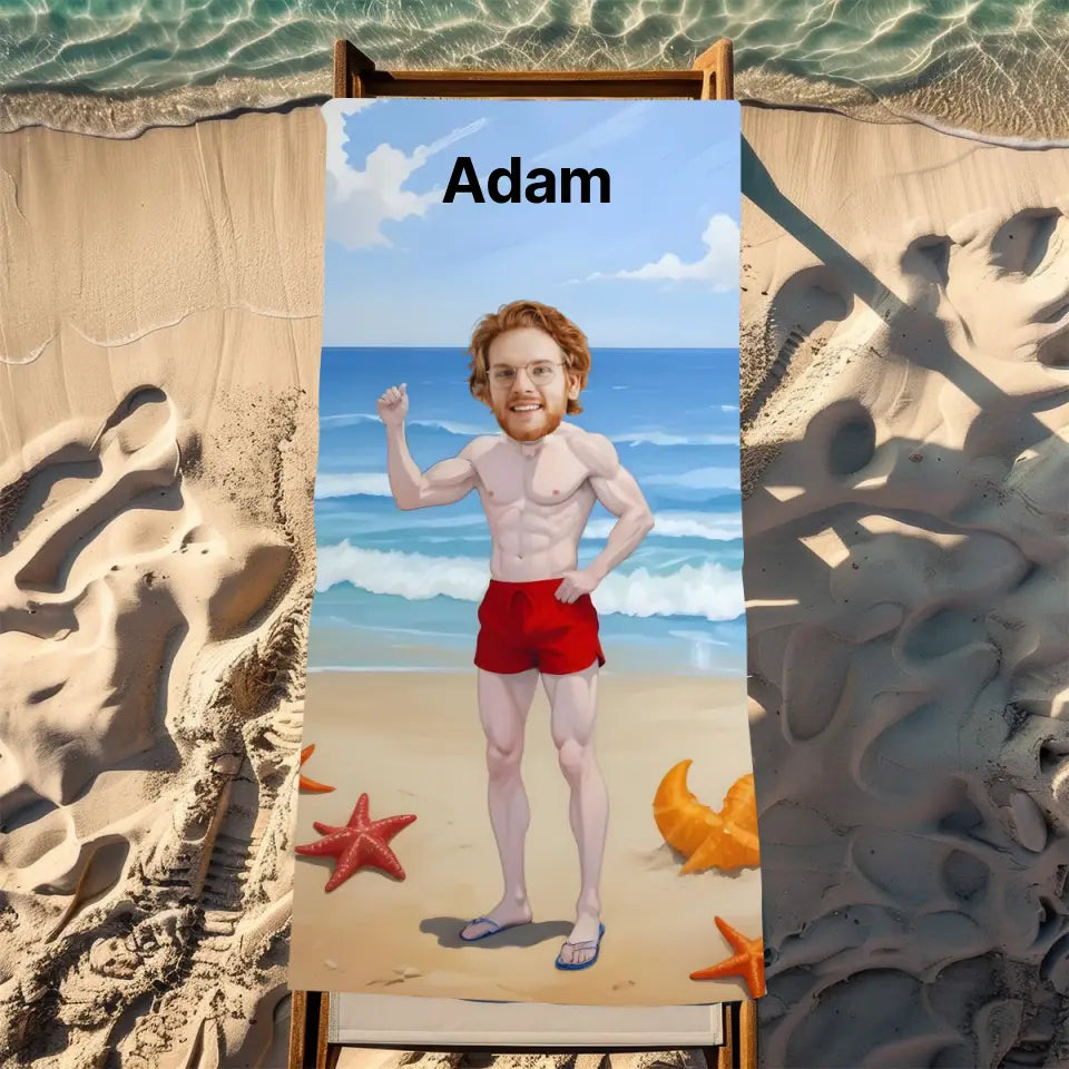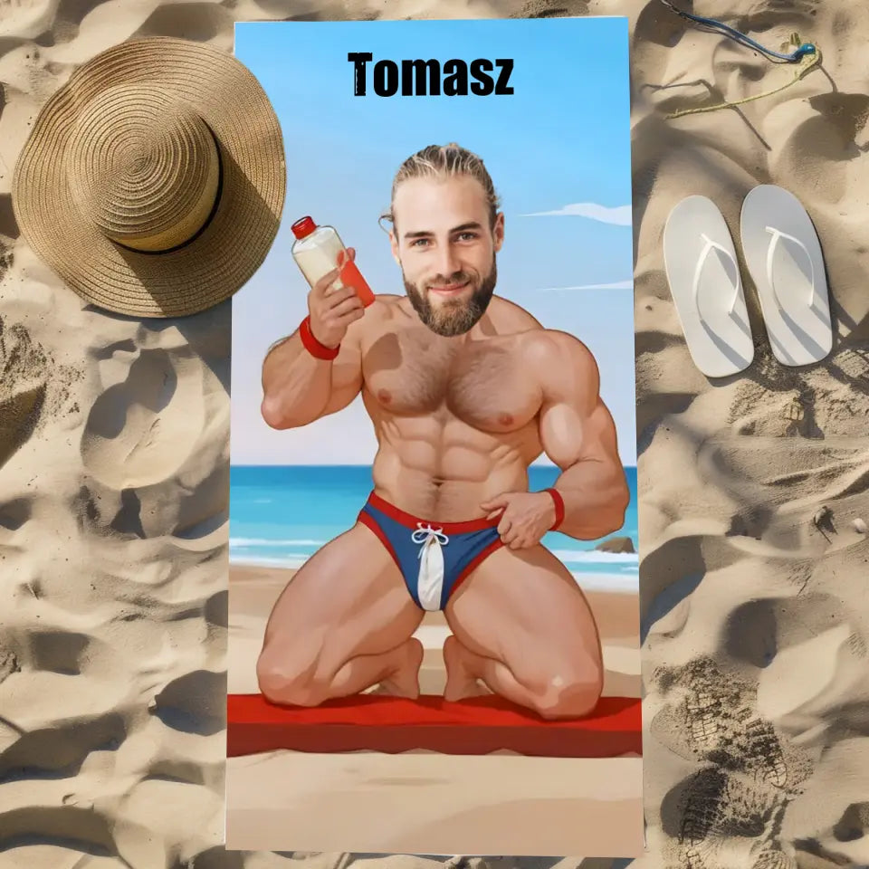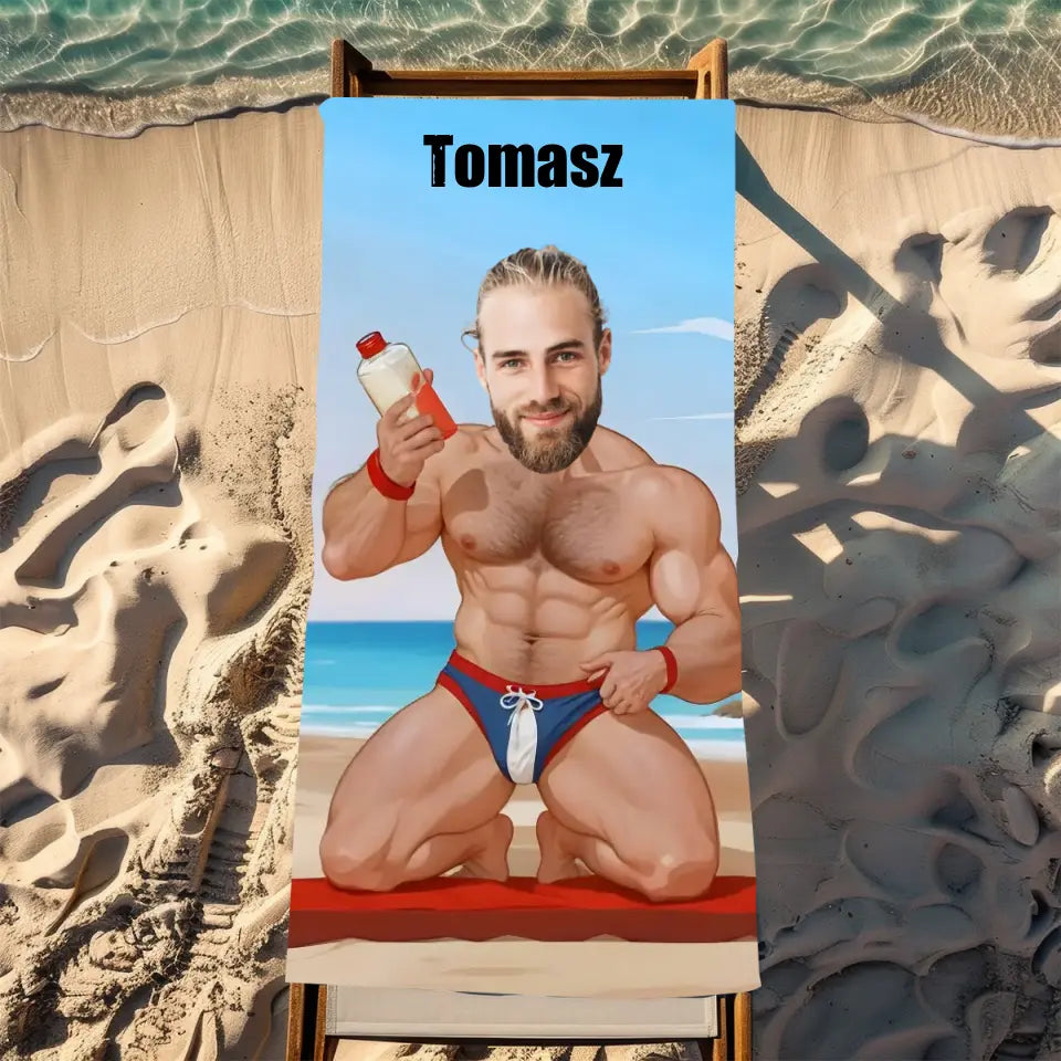 Dodaj własne zdjęcie! Mężczyzna w kąpielówkach - Ręcznik plażowy, wyjątkowy prezent dla mężczyzn