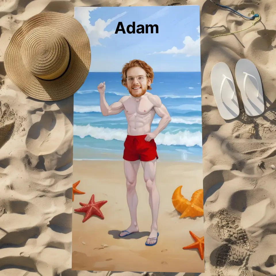 Dodaj własne zdjęcie! Mężczyzna w szortach - Ręcznik plażowy, wyjątkowy prezent dla mężczyzn