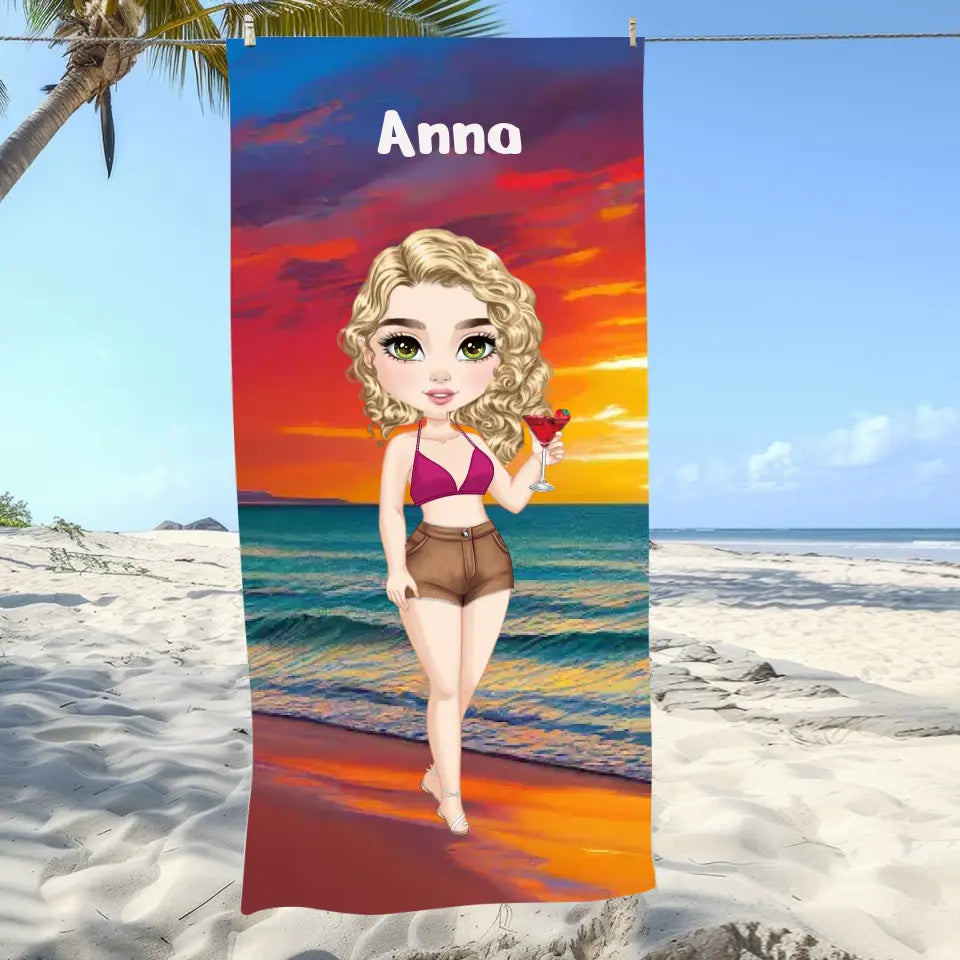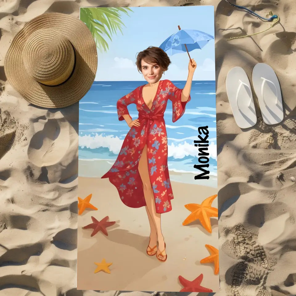 Kobieta na plaży - Ręcznik plażowy, wyjątkowy prezent dla przyjaciółek