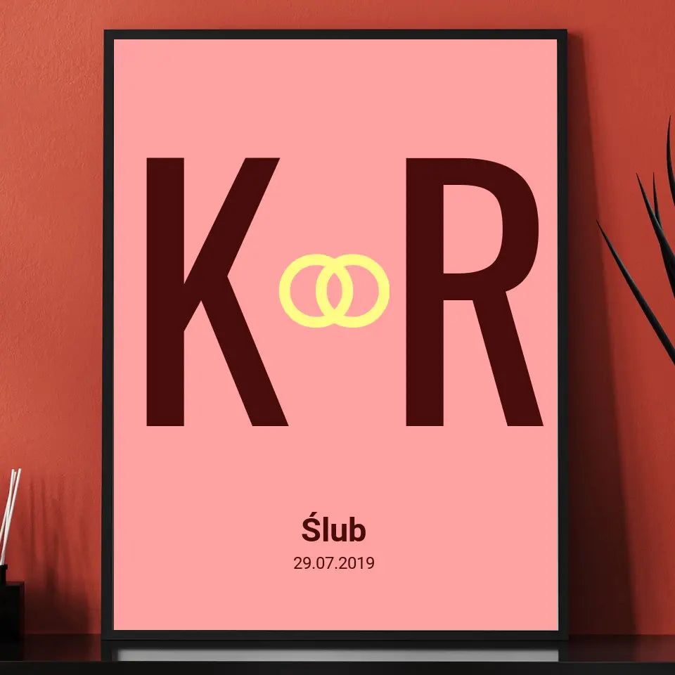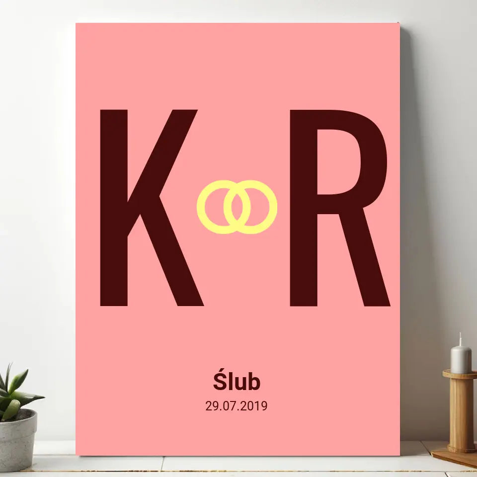 Nasz ślub "Pierwsze litery imion"- druk na płótnie, spersonalizowany prezent dla pary