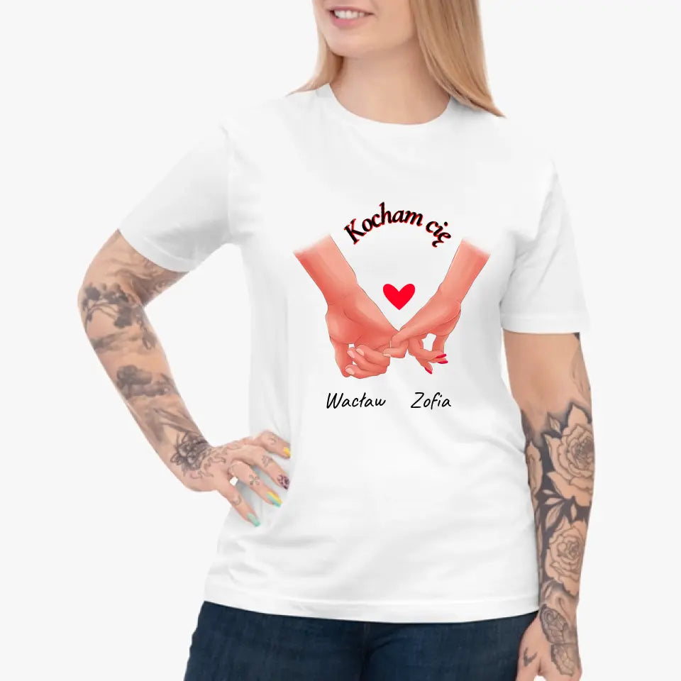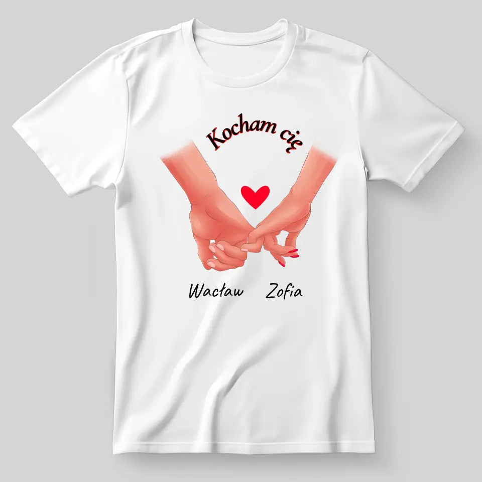 Para rąk z imionami - koszulka, wyjątkowy prezent dla pary