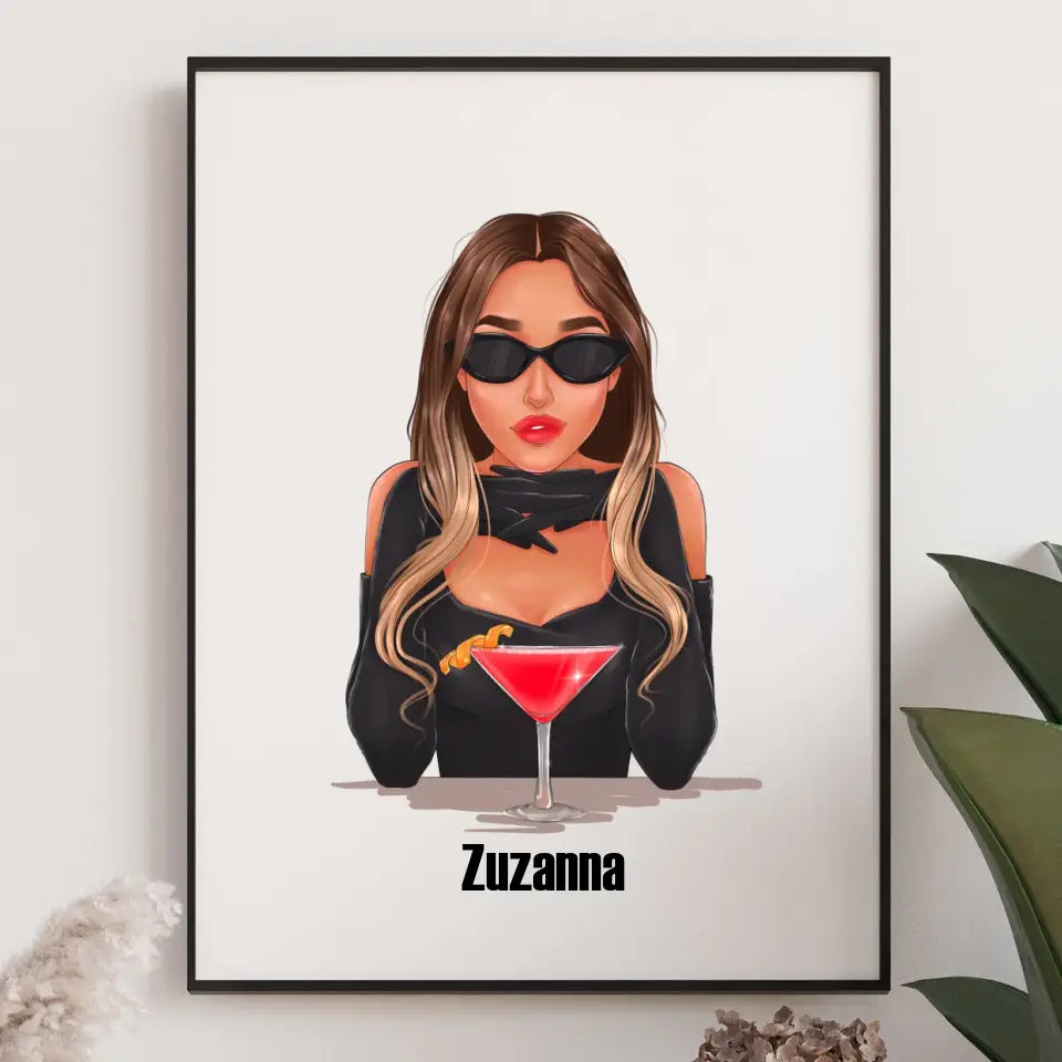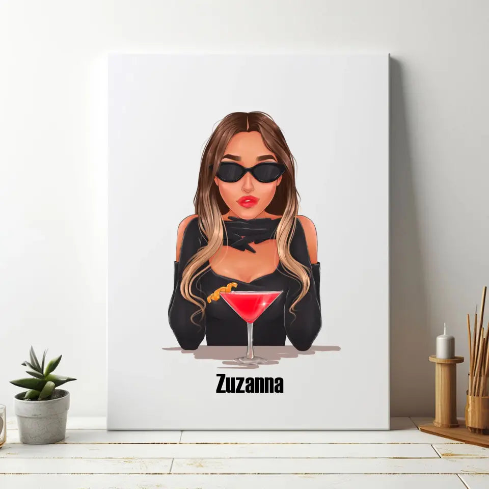 Modna dziewczyna z koktajlem - druk na płótnie, spersonalizowany prezent dla dziewczyny, przyjaciółki