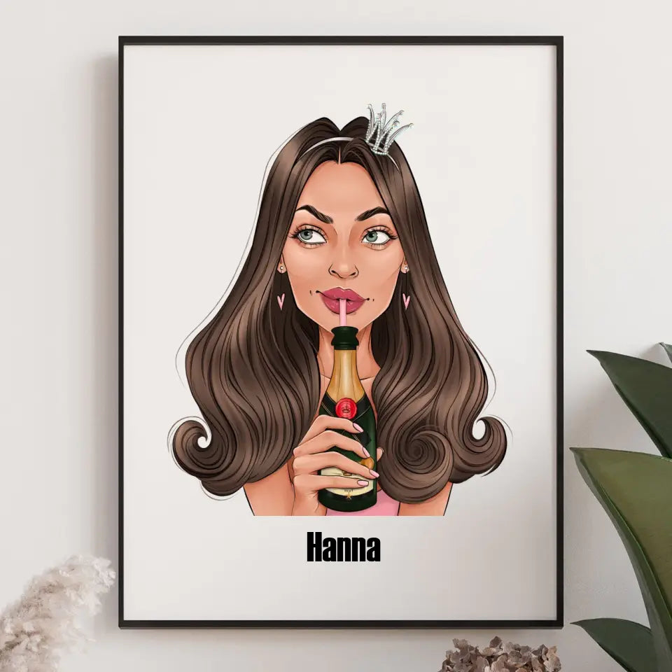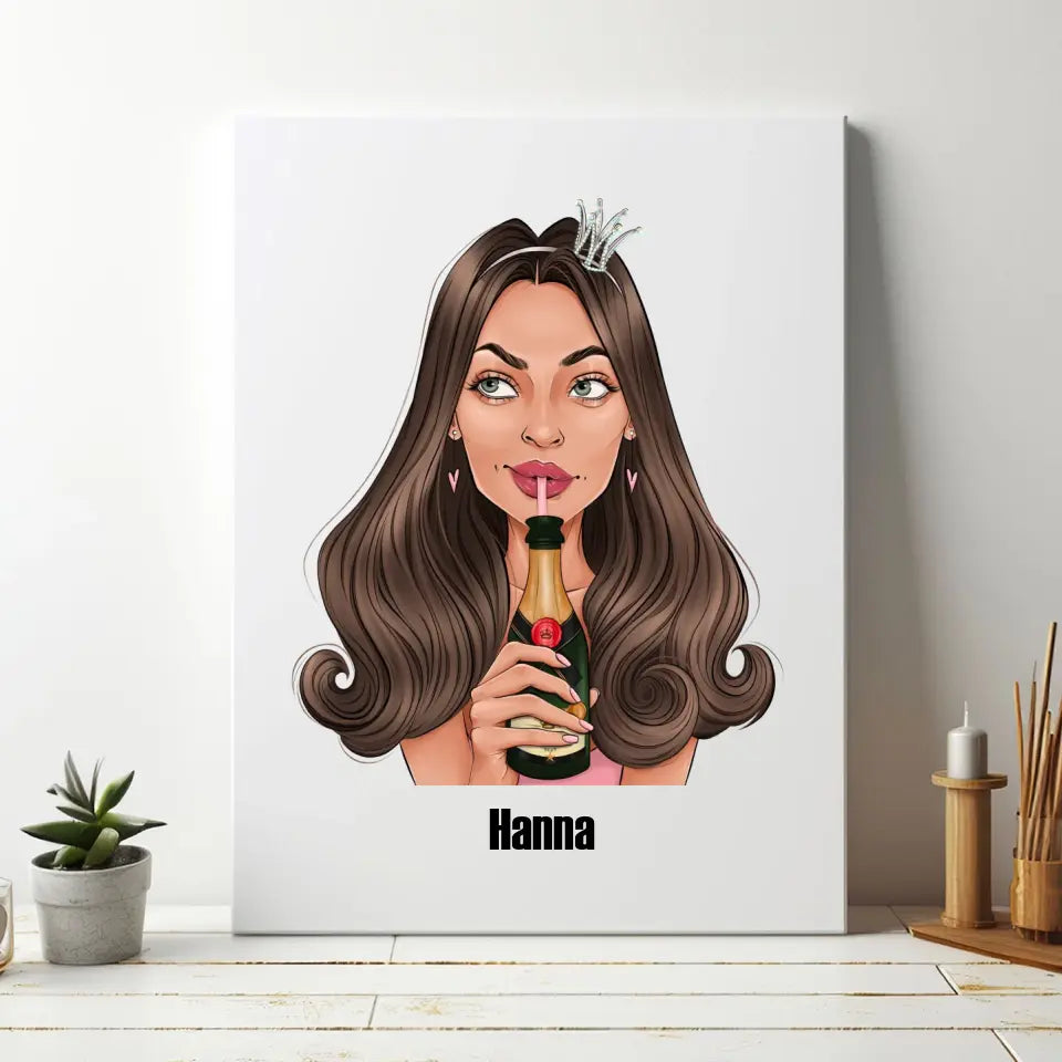 Dziewczyna z szampanem - druk na płótnie, spersonalizowany prezent dla dziewczyny, przyjaciółki