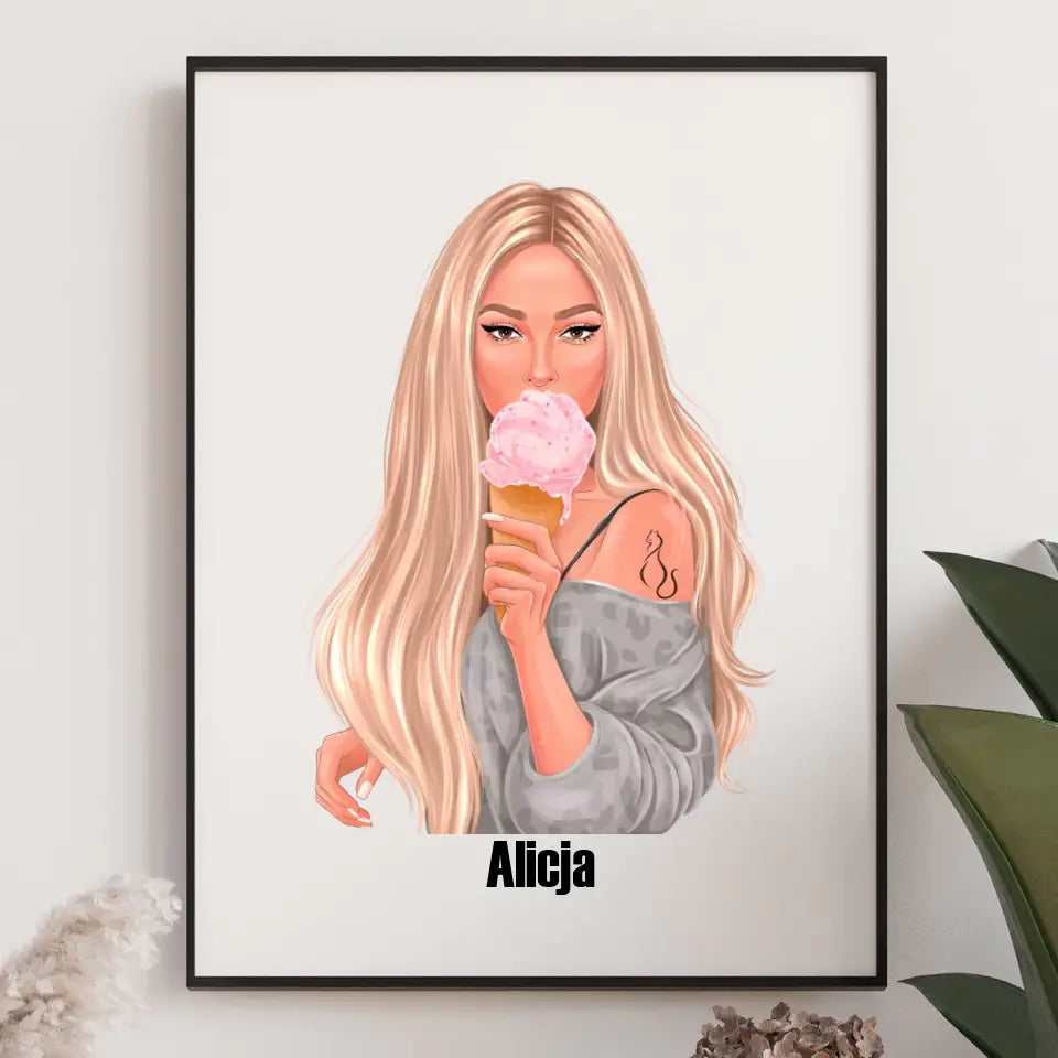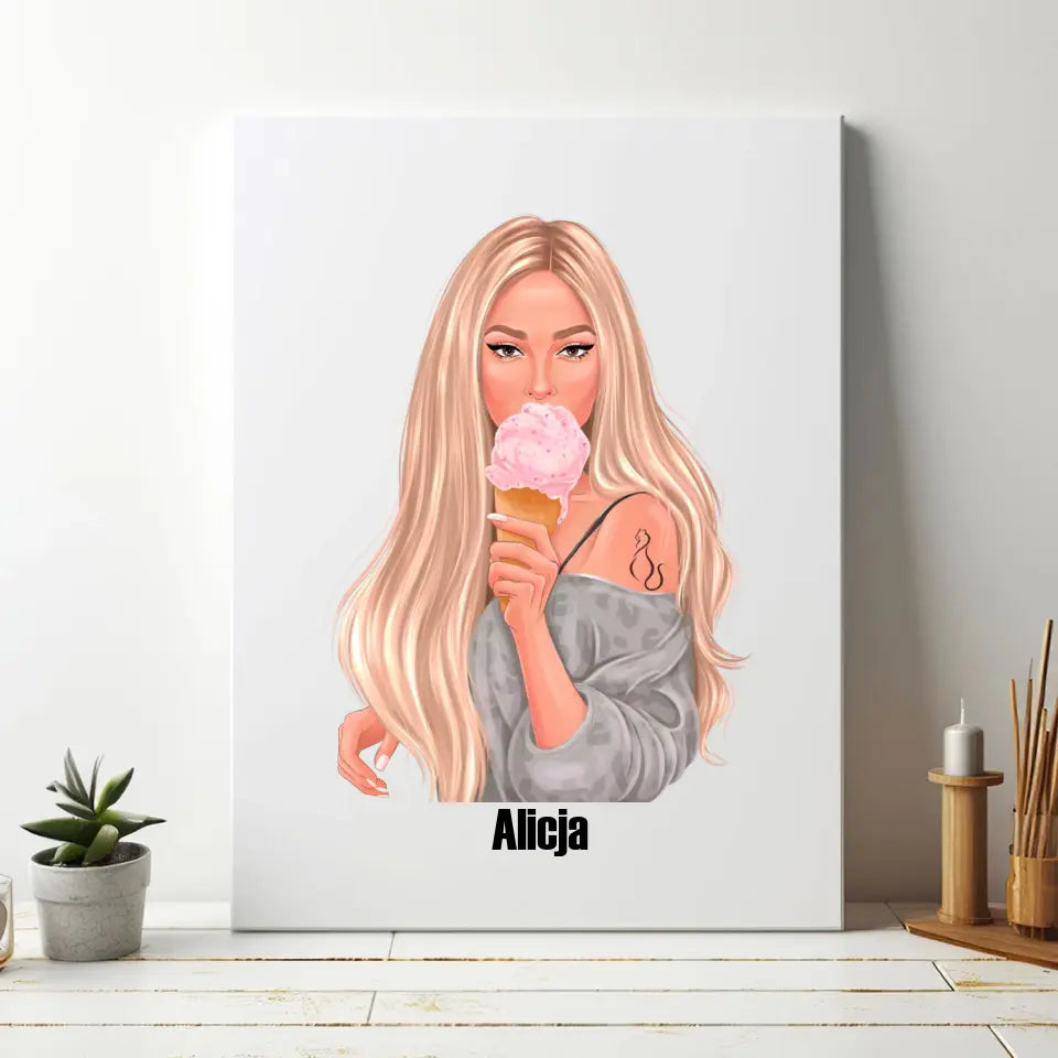 Dziewczyna z lodami - druk na płótnie, spersonalizowany prezent dla dziewczyny, przyjaciółki